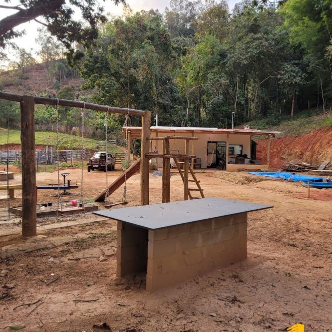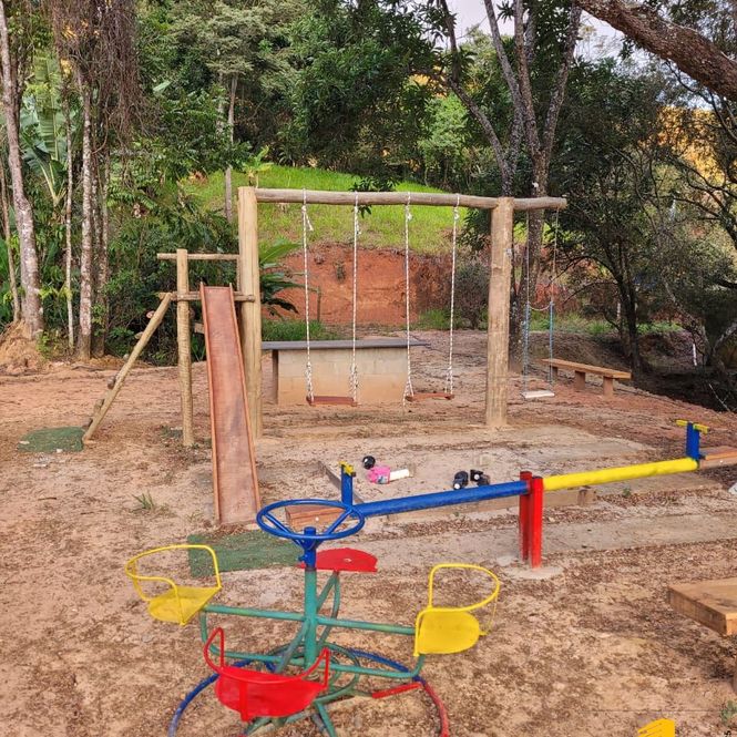 Playgrond com balanço, escorregador, gangorra, caixa areia, mesa de Ping Pong, pontos de rede de descanso