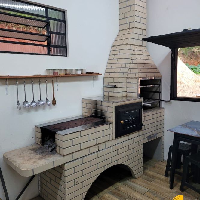 Cozinha com fogão a lenha